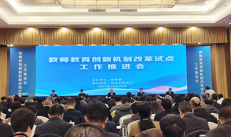 12月26日,教育部教师教育创新机制改革试点工作推进会在河北石家庄召开。教育部党组成员、副部长杜江峰出席会议并讲话。我校党委常委、副校长王旭林等一行3人参会。