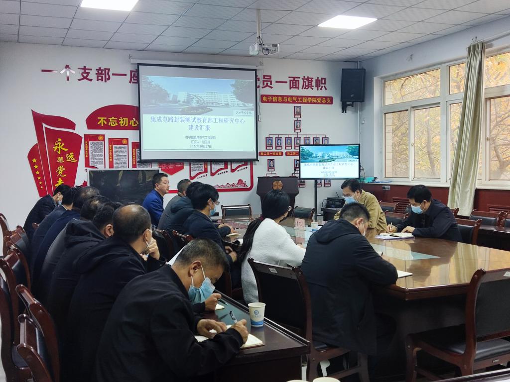 10月27日下午,党委书记李正元、校长汪聚应带领学校发展规划处、人事处、教务处、科研处、实验室建设与国有资产管理处、财务处、基建处、后勤保障部等职能部门负责人深入电子信息与电气工程学院,现场研究推进“集成电路封装测试教育部工程研究中心”建设工作。机电与汽车工程学院、化学工程与技术学院和资源与环境工程学院院长,电子信息与电气工程学院班子成员及工程研究中心相关人员参加现场会。