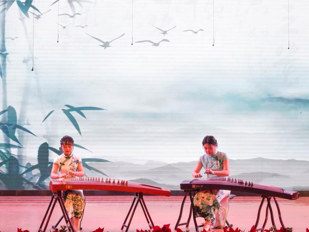 开场舞《鲜红的旗帜》以恢宏的场面和磅礴的气势拉开了演出的序幕,以当代舞的动律展现了中国共产党的光辉历程以及人民对党的热爱。竹笛齐奏《牧民新歌》、古筝齐奏《翠语》、二胡齐奏《赛马》民族器乐类节目体现出我们的祖国宽广美丽,我们国度的地大物博。独唱《感谢你》《再见了大别山》《青玉案·元夕》唱出了人们对美好生活的向往和对祖国的无限热爱。二重唱《真爱乐章》、男声三重唱《啊,朋友再见》勾起了大家对大学期间学习生活的回忆,将晚会推向了高潮。诗朗诵《我们正在启航》深情回顾党的奋斗历史,热情讴歌党的光辉历程,激发了广大群众爱党、爱国的情怀,增强了党员的理想信念,激发党员的历史责任感、使命感和荣誉感。舞蹈《锦绣中华》集结藏、蒙、傣、维等各民族舞蹈,表达了各族人民团结向党的情感。