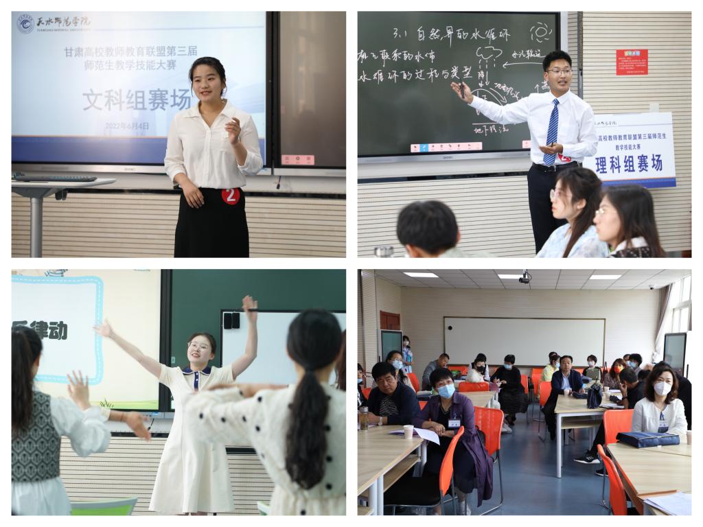 6月4日至5日,甘肃高校教师教育联盟第三届师范生教学技能大赛在天水师范学院举行,大赛由甘肃省教育厅主办,甘肃高校教师教育联盟、天水师范学院承办。8所联盟高校推荐参赛选手共计88名,各校领队,以及校领导、教务处负责人等来自外地师生共计260余人现场观摩同步直播,全省乃至全国数千名师生在线观摩同步直播。