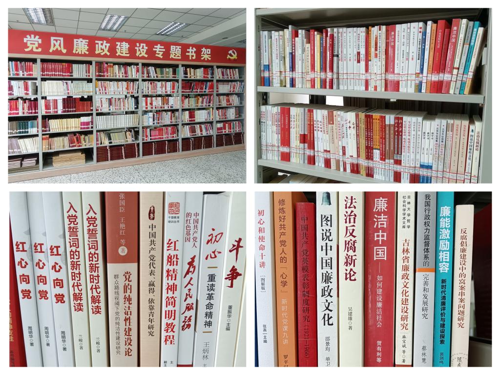 图书馆专门增设“党风廉政建设专题书架”,为全校党员干部和师生读者提供学廉、知廉、倡廉平台,营造“书香育廉”氛围。该图书专架藏书1500余册,内容涉及廉政理论与思想教育、党史、党纪、党规、廉政理论研究、道德教育、品行修养以及反腐文学作品、廉洁家风传承等方面。