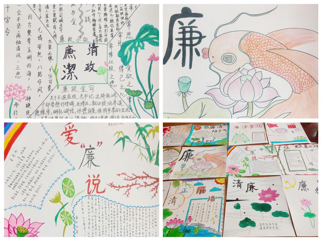 外国语学院党总支开展手绘党风廉政建设手抄报活动,师生党员纷纷拿起画笔,勾勒出代表廉洁的莲花、描绘出中国心、画着点点红梅,写下自律誓言。在粉白的莲花、嫩绿的荷叶衬托下,《爱莲说》《石灰吟》中廉洁警句、廉政格言、廉政故事等内容精彩呈现。用手中的画笔在纸上留下精彩画作的同时,廉洁文化之花也在每个人的心中绽放。