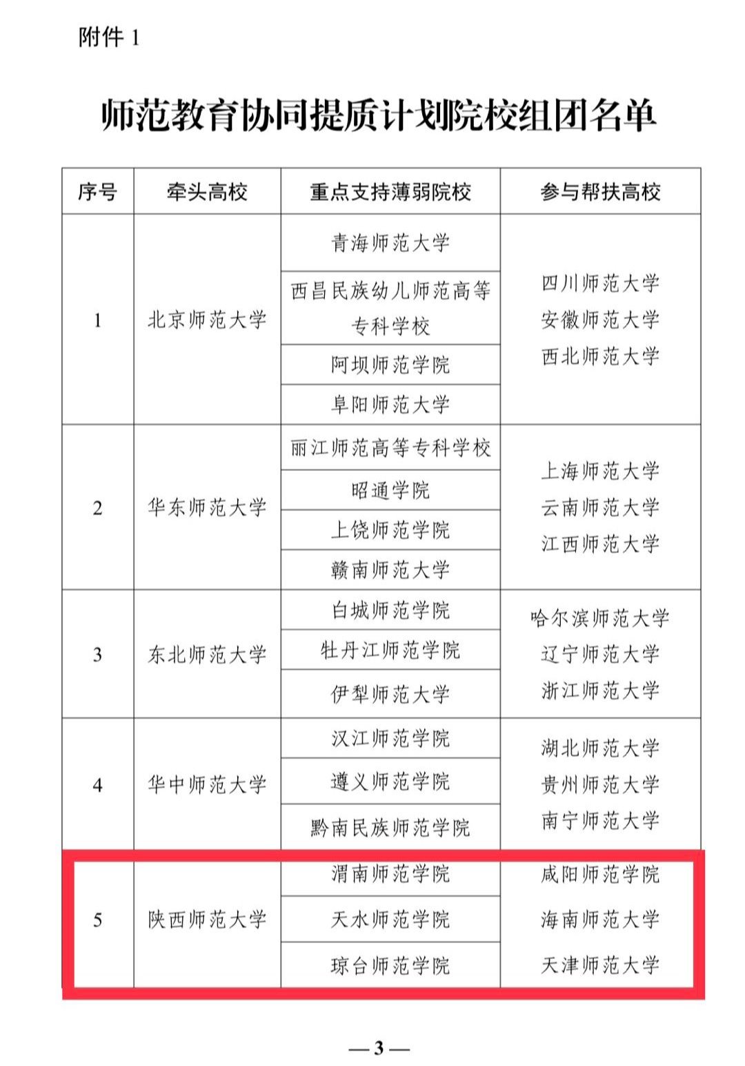 甘肃高校仅天水师范学院和河西学院入围重点支持院校名单。教育部结合已有帮扶关系,经充分征求各方意见,确定参与帮扶的院校并形成院校组团安排,其中天水师范学院、渭南师范学院、琼台师范学院,由陕西师范大学牵头,天津师范大学、海南师范大学、咸阳师范学院参与帮扶。
