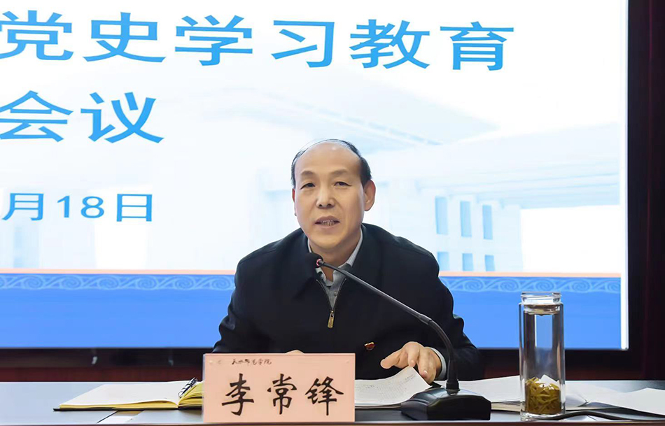 李常锋就学校进一步深化党史学习教育提出要求,一是要进一步加强政治建设,在党史学习教育中汲取智慧力量,坚定历史自信,把握历史主动;二是要持续发挥党史立德树人作用,推动党史学习教育常态化长效化机制建设;三是要发挥学校学科优势,立足思想政治教育主阵地,持续做好十九届六中全会精神的贯彻落实;四是要在学校更名大学,新校区建设进程中不断推进“我为群众办实事”实践活动;五是要在学用结合上再发力,拓展党史学习教育成果,把党史学习教育成果转化为不断推动学校高质量发展的源动力。