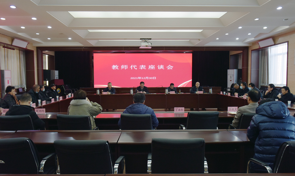 12月30日下午,学校在办公楼605会议室召开离退休教职工、民主党派、无党派人士和教师代表座谈会。党委副书记师平安,党委常委、副校长曹爱明,党委常委、纪委书记、监察专员李淳,党委常委、统战部部长崔亚军出席会议,学院和有关职能部门负责人及广大教师代表参加座谈会,会议由师平安主持。