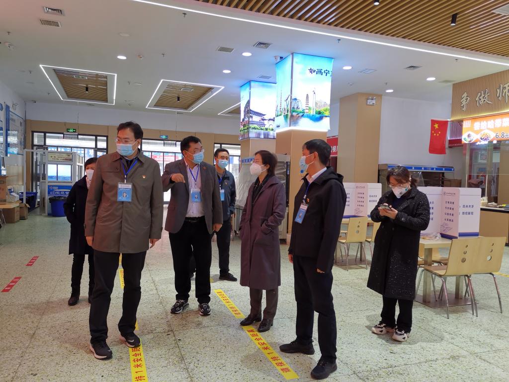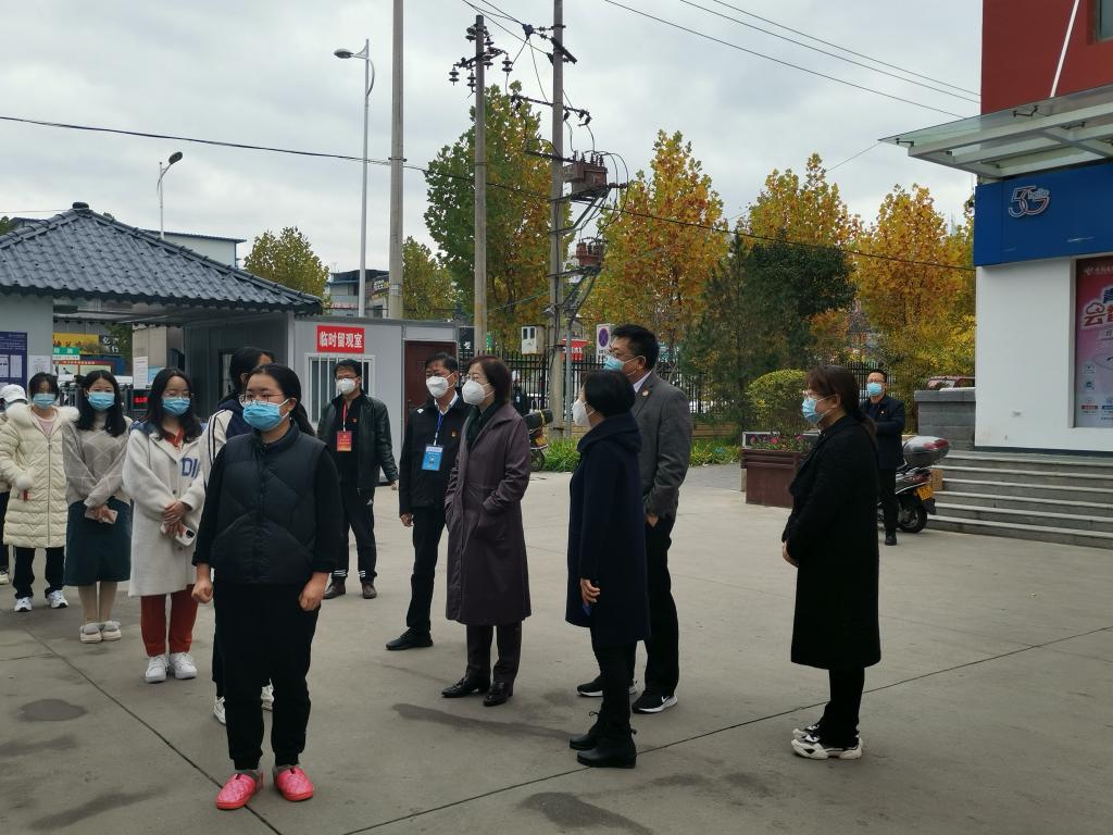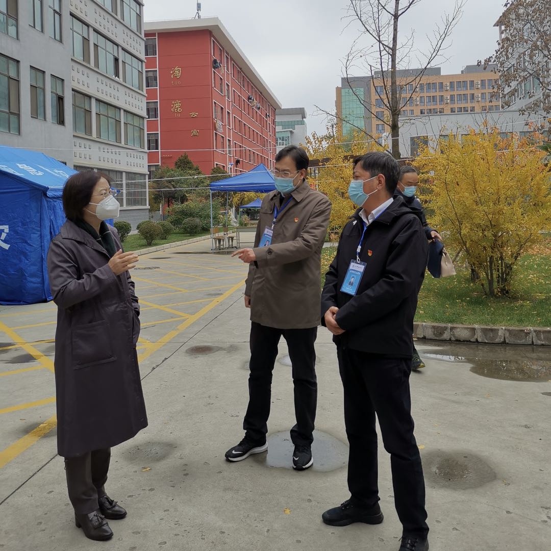 王海燕一行详细查看了学校各区域进出管理、学生宿舍管理、核酸检测现场和食堂供餐、防控物资存储等学校重点区域疫情防控工作;学校党委书记李正元就校园封闭管理、核酸检测、餐饮保障、物资供应、消毒消杀、平抑物价措施、志愿服务、线上教学以及学生心理健康辅导等疫情防控重点工作落实情况作了简要汇报。