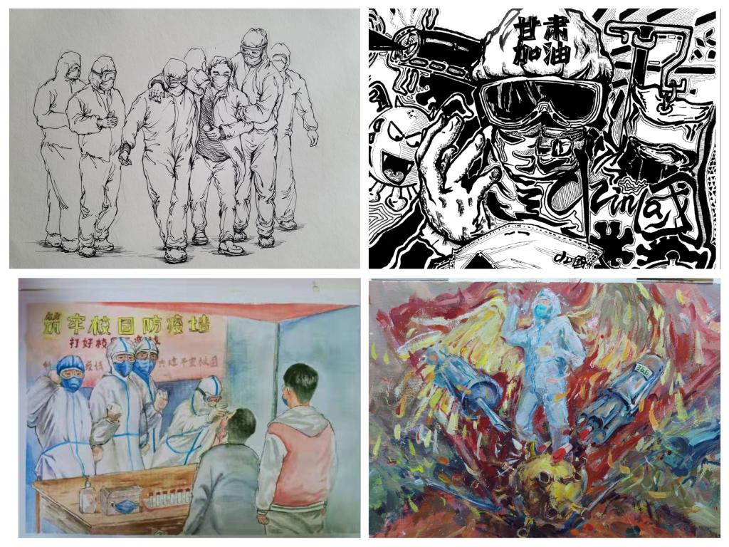 临时党支部相关负责人表示,活动旨在以美术作品的形式投入疫情防控阻击战,彰显当代大学生的使命与担当。