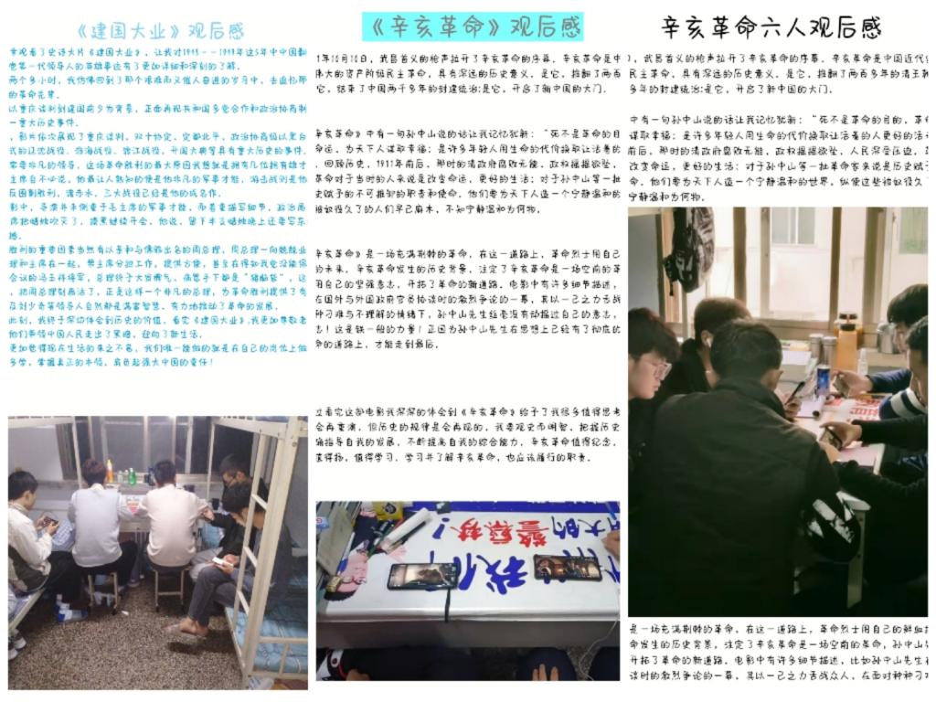 10月30日晚,学院通过组织同学线上观看《建国大业》《建党伟业》《辛亥革命》等红色影片,对同学们进行党史、新中国史、改革开放史、社会主义发展史的学习教育,弘扬革命先烈热爱祖国与人民,“牺牲小我,成就大我”的高尚品质,在重温历史中汲取奋进的精神力量。同学们纷纷表示越是在艰难时刻,越要有不畏困难的勇气,同时感谢一直坚持在抗击疫情一线的所有工作人员,应向他们致敬。