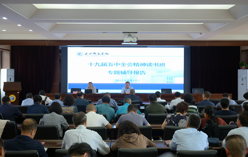 5月12日,学校邀请省扶贫办调研指导处处长李伯祥作十九届五中全会精神专题辅导,党委常委、副校长王旭林主持报告会,天水市扶贫办党组成员、副主任张国强,秦安县扶贫办干部桑盼盼以及我校处科级干部、全体驻村干部共计100余人参加。