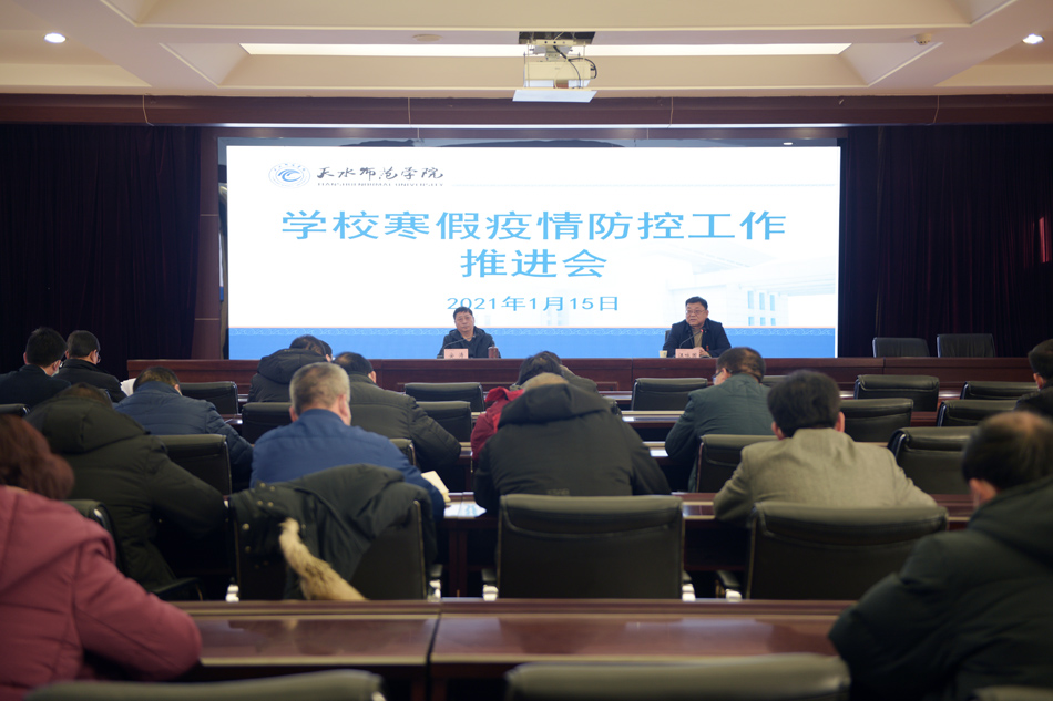 1月15日上午,天水师范学院在办公楼605会议室召开寒假疫情防控工作推进会议。党委副书记、校长安涛,党委常委、副校长汪咏国出席会议,会议由汪咏国主持。