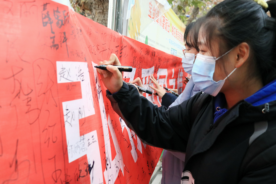 12月9日,校学生会在学校东操场门口,组织“纪念一二·九,弘扬爱国情,树立报国志”主题签名活动。活动中,同学们纷纷驻足了解“一二·九”运动的历史背景、社会影响和运动意义,并通过签名的形式表达了对不畏强权、勇于斗争、爱国卫国青年的深切缅怀。