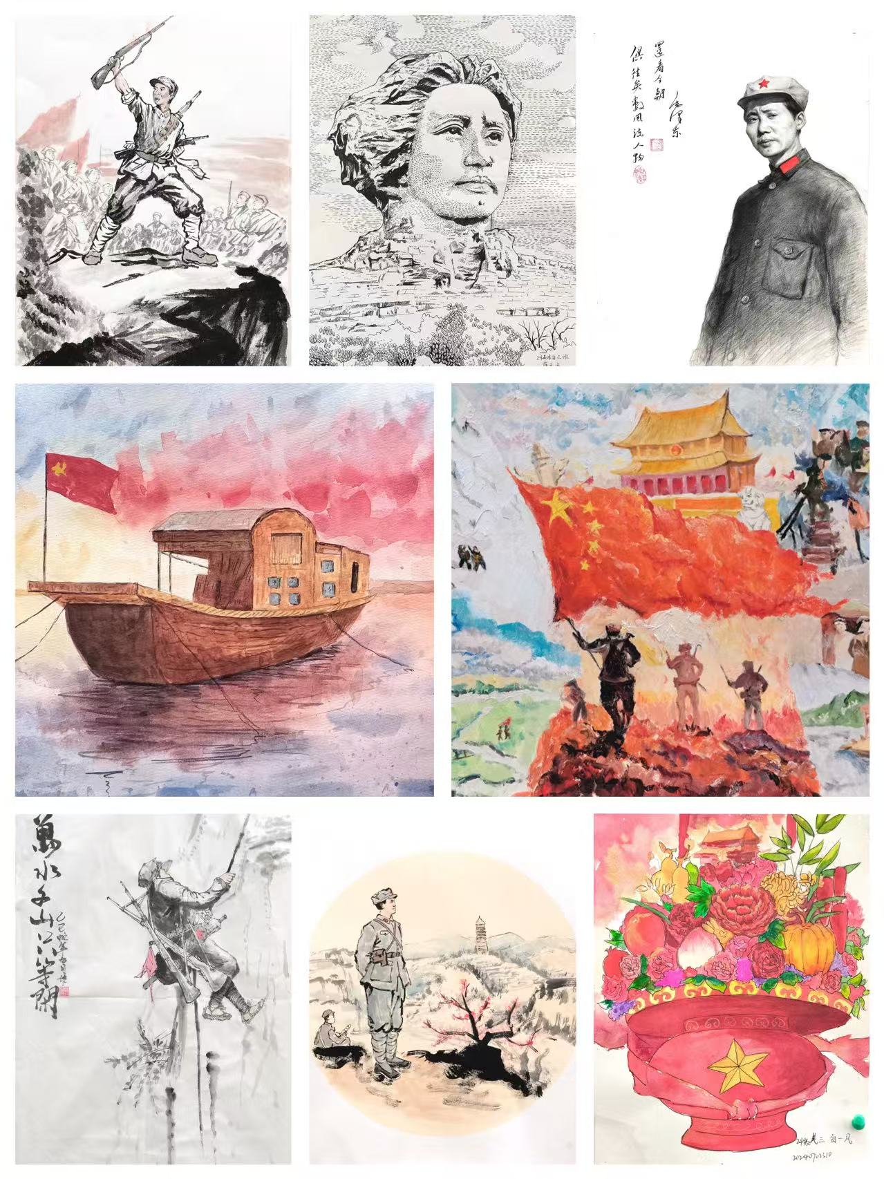 本次展览共展出80余件作品,涵盖中国画、油画、素描、版画、招贴设计、手绘、剪纸等多种艺术形式。作品主题鲜明、构思巧妙、色彩丰富,学子们从抗战历史中汲取创作灵感,以笔为刃、以美为媒,将英雄烈士的坚毅凝于笔端,用视觉语言诠释红色信仰,让黑白线条勾勒历史记忆,让斑斓色彩点亮精神之光。这些作品不仅是对峥嵘岁月的深情回望,更是青年一代以艺术传承红色血脉的生动实践,展现了学子们赤诚的爱国之心、深刻的思想感悟以及铭记历史、奋发向上的精神风貌。