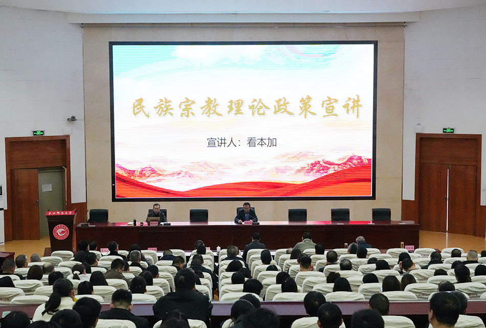 看本加从民族工作、宗教工作、统战工作三个方面,深入阐释了铸牢中华民族共同体意识的深刻内涵、抵御和防范宗教向校园传播渗透的极端重要性及落实统战工作责任制的实践要求,并结合高校工作实际提出了一些具有建设性的思路措施。整个宣讲主题鲜明,内容丰富,逻辑缜密,视野开阔,既有理论高度,又有实践基础,对学校完整准确全面把握和深入贯彻新时代党的民族宗教工作理论和方针政策具有十分重要的指导作用。
