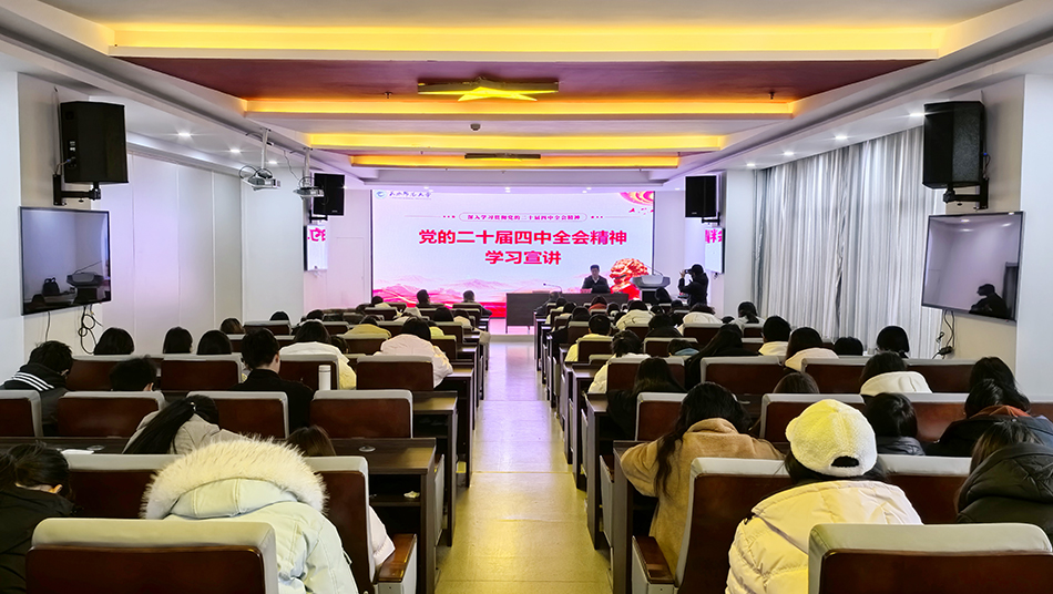 1月4日上午,校长汪聚应为文学与文化传播学院师生宣讲党的二十届四中全会精神。