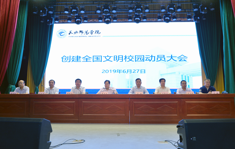 6月27日下午,天水师范学院创建全国文明校园动员大会在学校文化会堂举行。党委书记李正元出席会议并讲话。校长安涛,副校长汪聚应、安建平、王文东,党委常委、统战部长崔亚军,党委常委马超出席会议,党委副书记师平安主持动员大会。