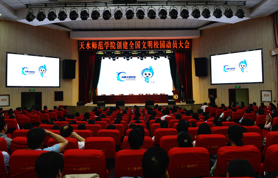 会前,全体与会人员观看了由党委宣传部策划、天水师范学院电视台制作的《从心开始,构筑文明》创建文明校园宣传片。